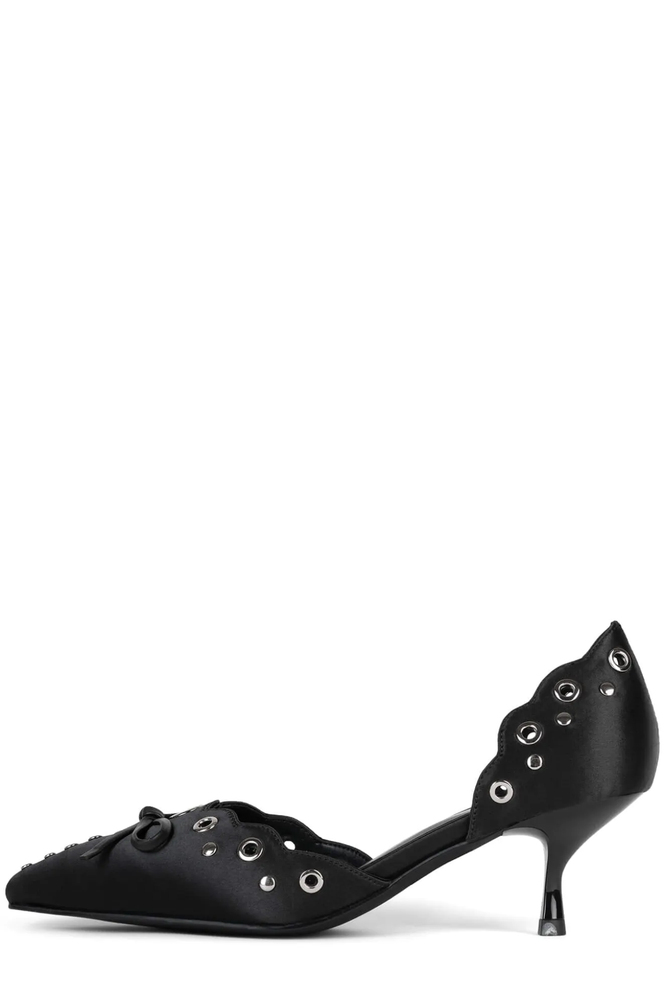 Pointed-toe kitten heel pump with eyelet and bow detail