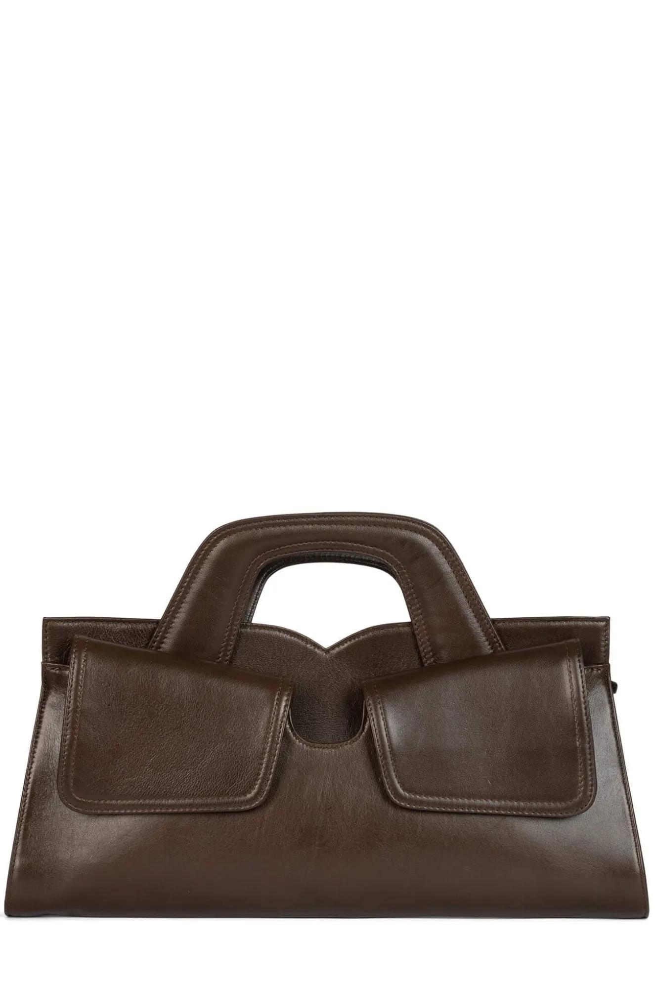East-west top-handle clutch handbag with removable shoulder strap and front pocket