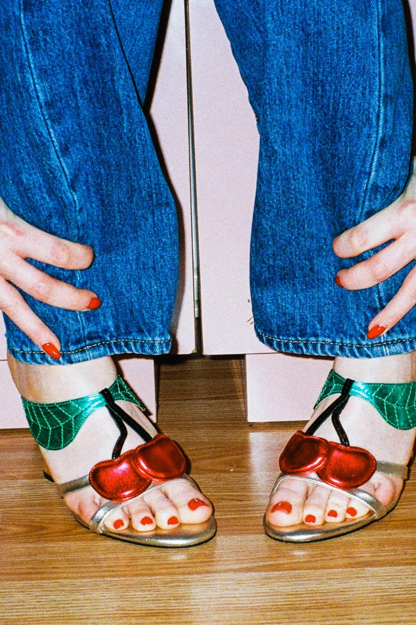 Sculpted wedge sandal with cherry detailFits true to sizeMeasurements taken from a size 7 4.5″ Heel, 0.25″ PlatformSynt…