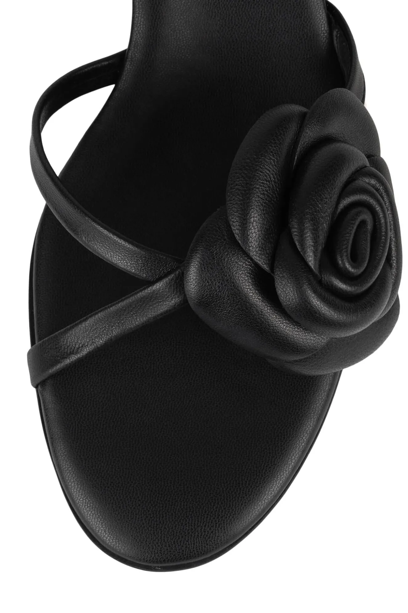 Crossband kitten heel sandal with flower detail