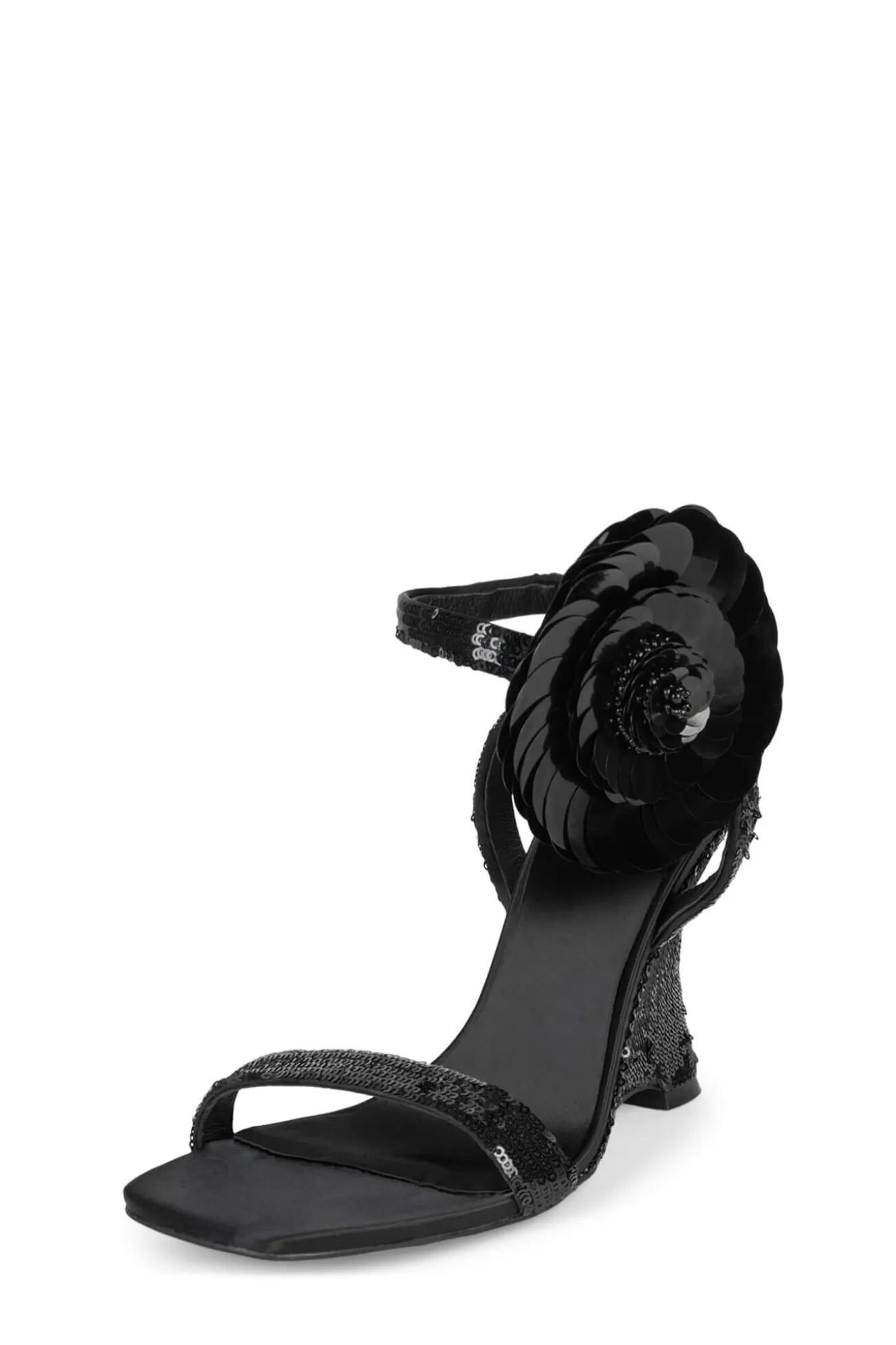 Minimal sequin wedge sandal with floral appliqué Fits true to sizeMeasurements taken from a size 7 4″ Heel, 0.25″ Pla…