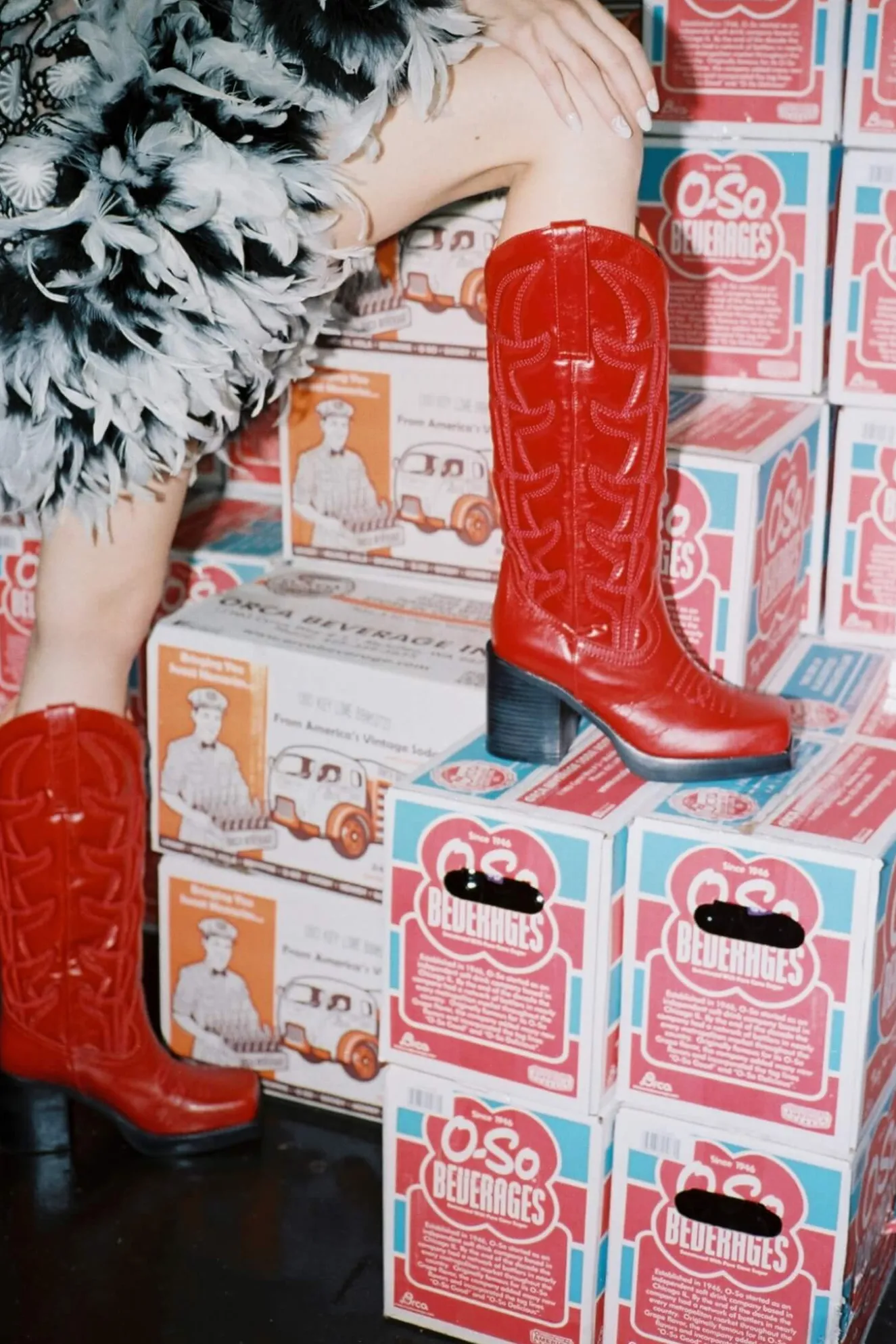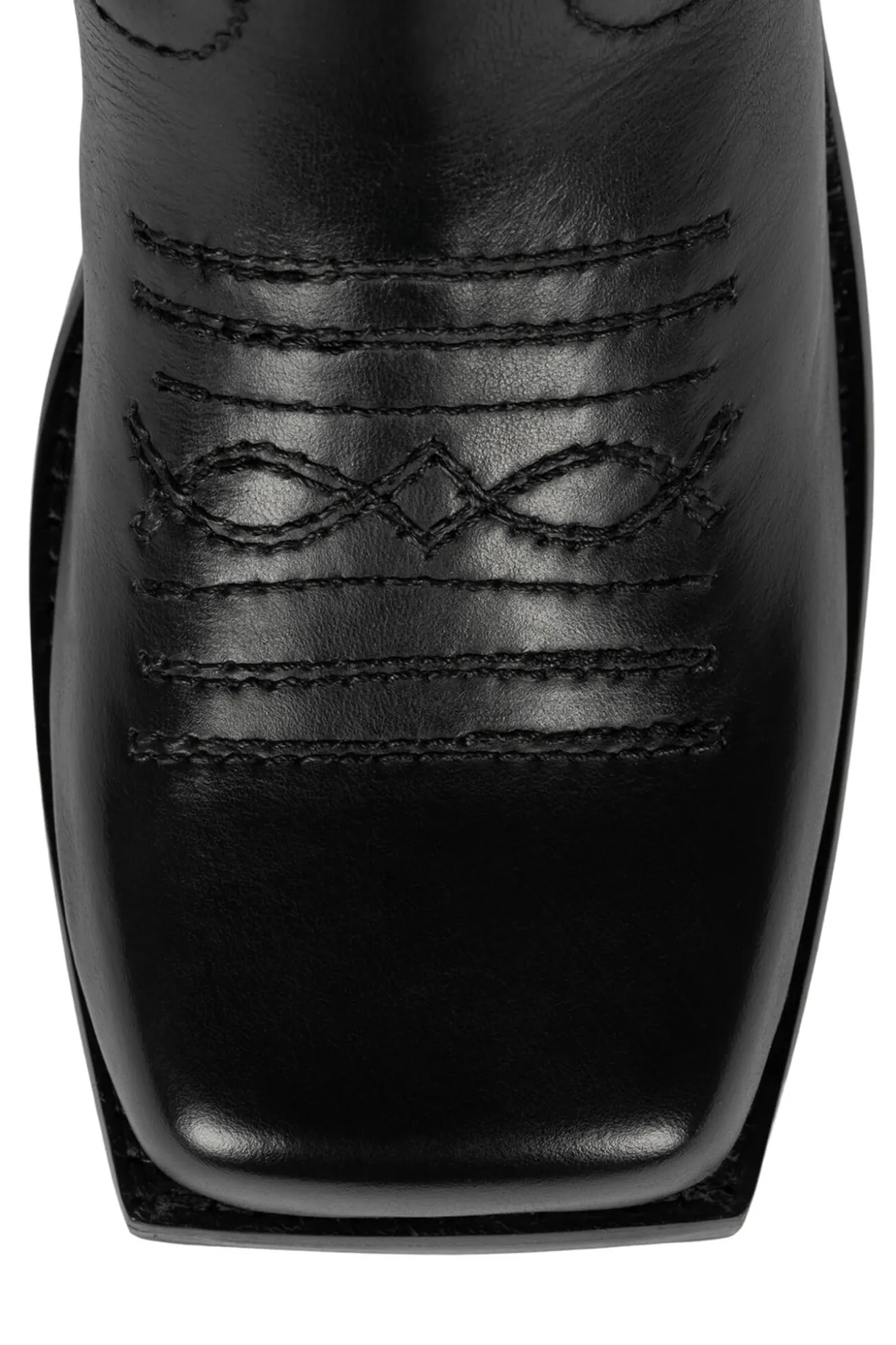 Knee-high square-toe cowboy bootFits half a size big. Order half size down.Measurements taken from a size 73.5″ heel, 0….
